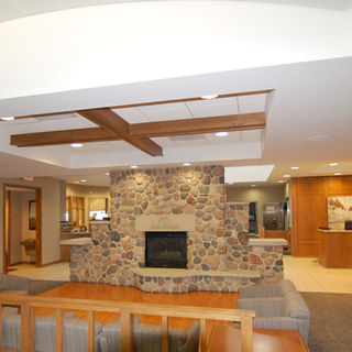 This new Bank facility contains financial operations on the main level with lease space on second and support space in the basement. The rustic exterior of the bank incorporates field stone gathered from the surrounding farmland.